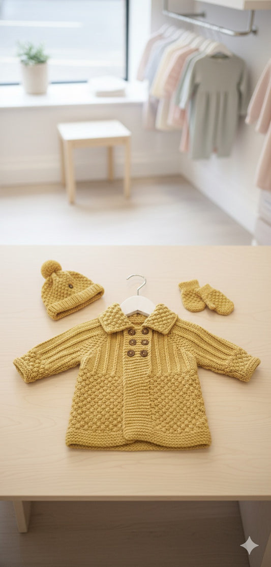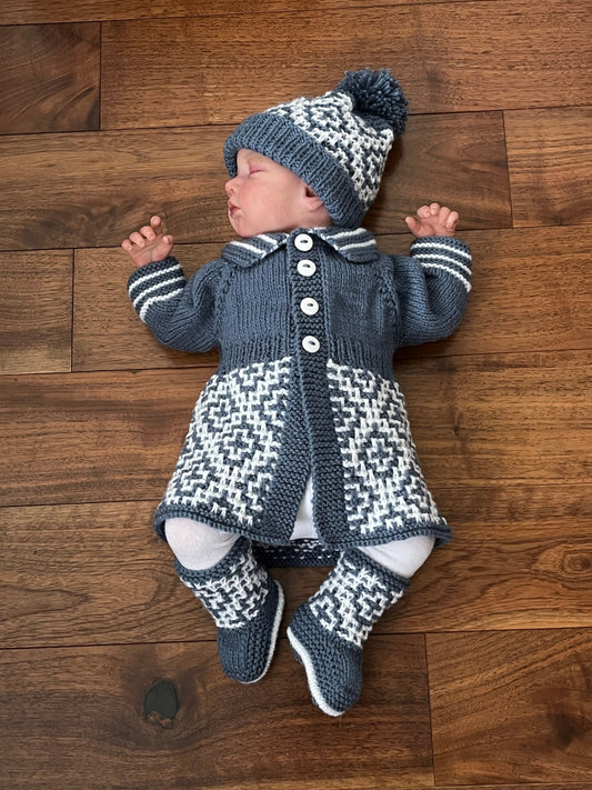 "Maze” 3 Piece Coat Set Knitting pattern for Reborn doll 16-22” or 0-3 Month Old Baby