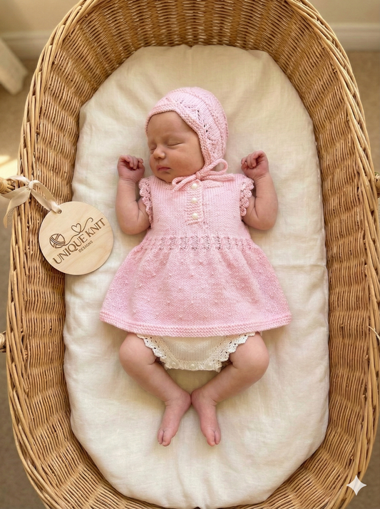 "Clementine” Dress Set Knitting pattern for Reborn doll 16 -22” or 0-3 Mth Old Baby