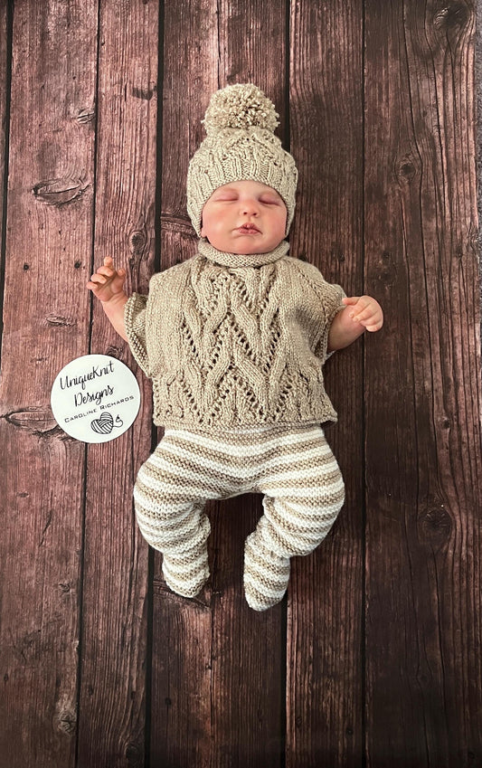 "Harlem” Poncho set Knitting pattern for Reborn doll 16 -22” or 0-3 Month Old Baby
