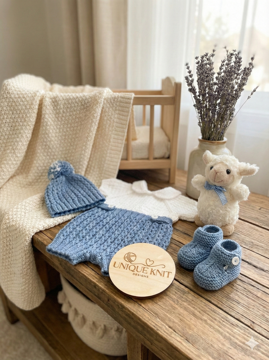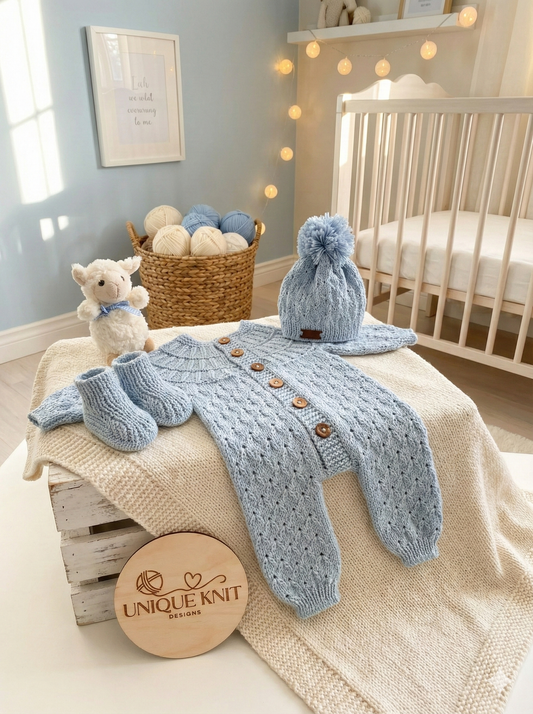 "Nathan” 4 Piece set - 8 sizes from premature to 24 Month old baby