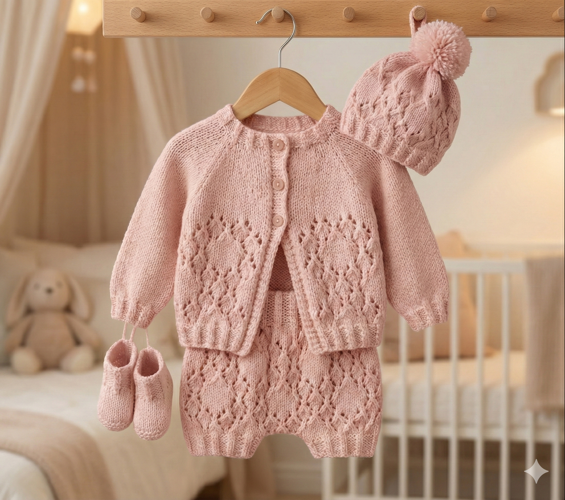 Coordinating Pants: The set includes matching knit pants designed for comfort and a perfect fit over nappies.