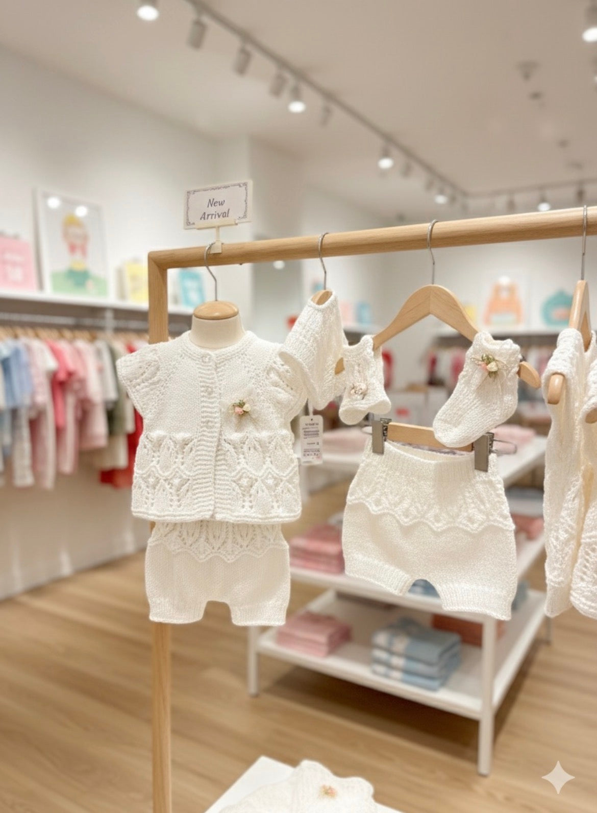 The little socks and bonnet are also included in the pattern and are quick to knit up.