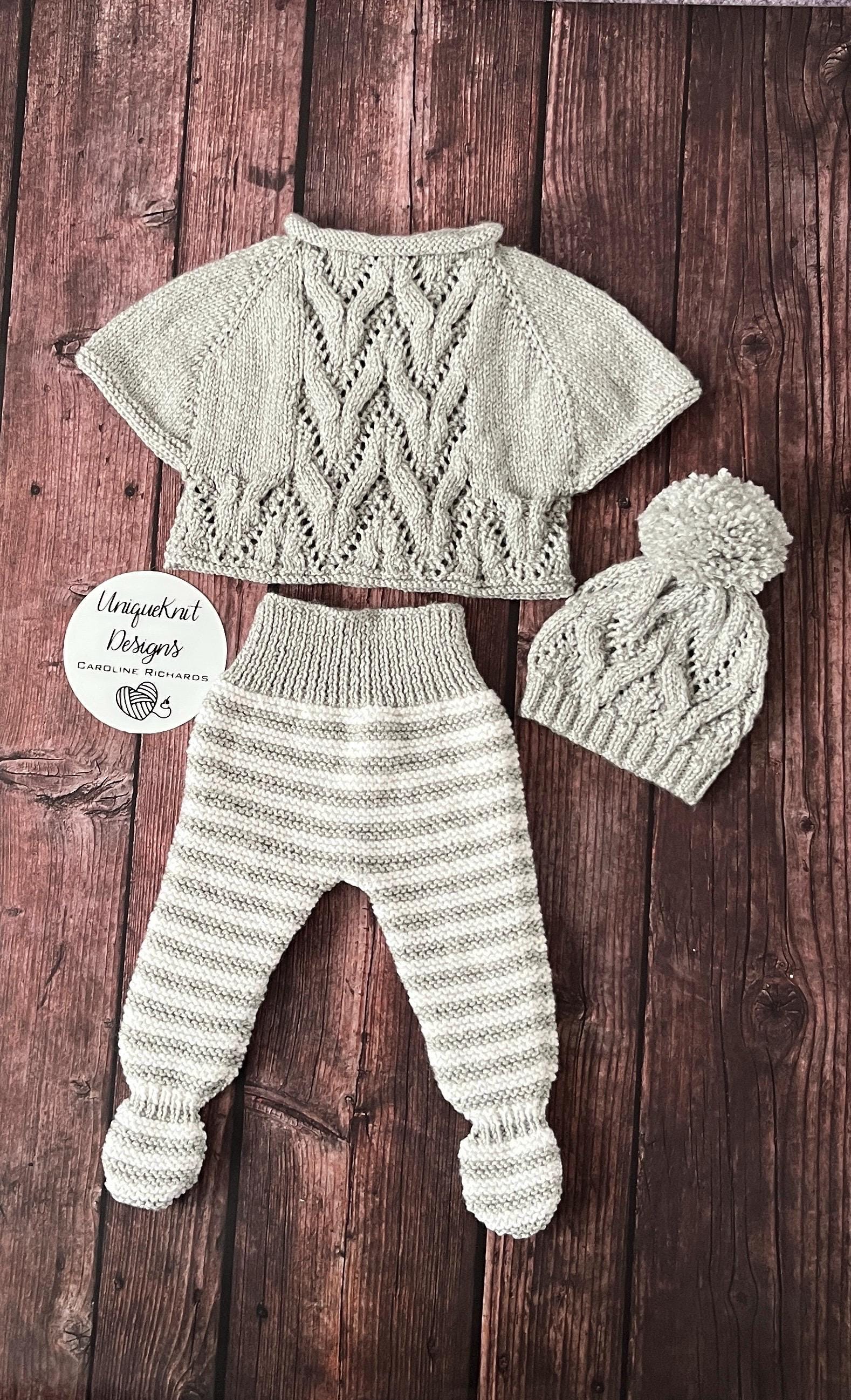 This pattern provides the instructions to make all 3 pieces and is suitable for a 0-3 month-old baby or a 16 - 22" Reborn doll.