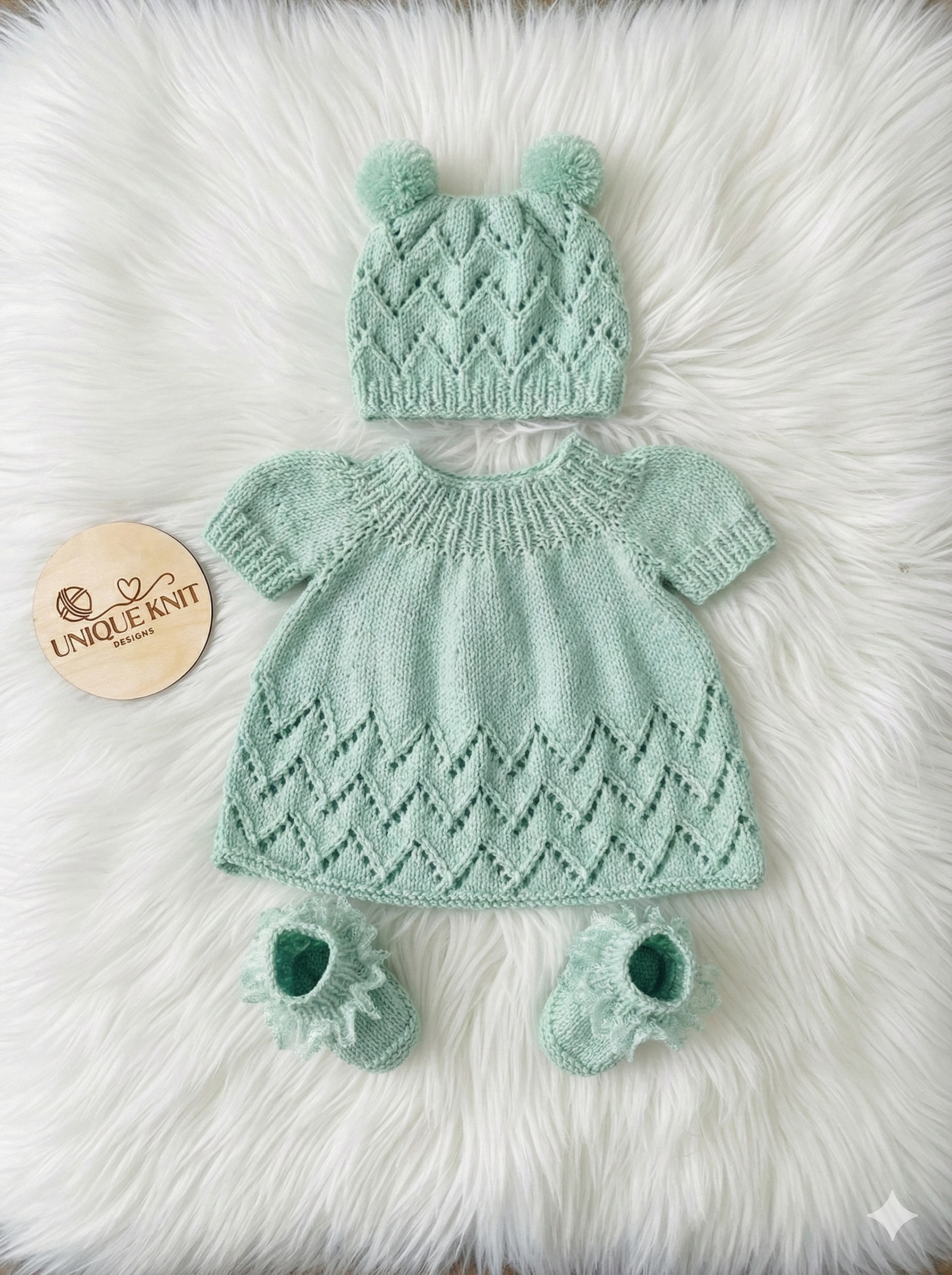 All pieces are knitted on straight needles with simple line-by-line instructions which makes these pieces easy to knit.