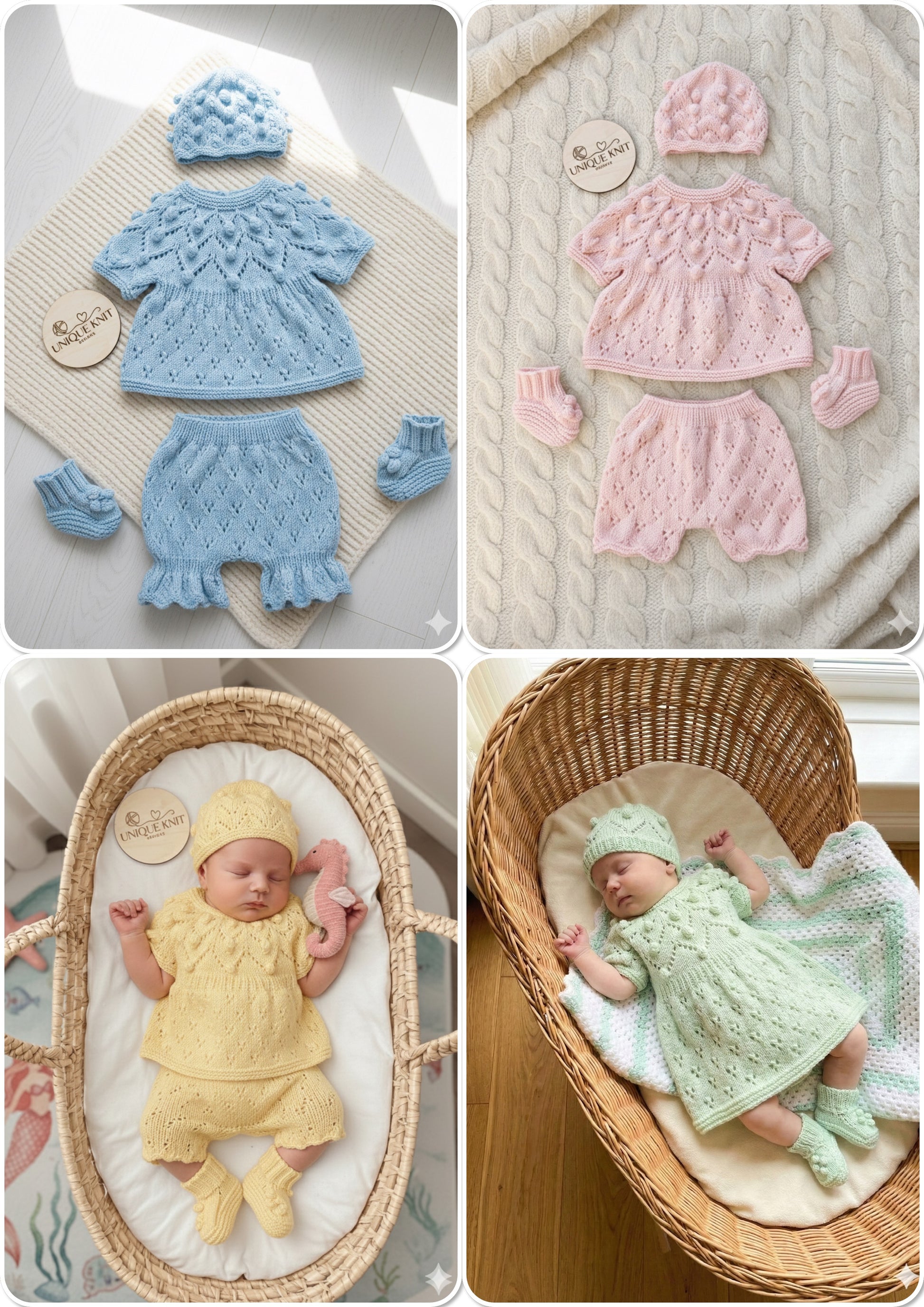 "Dewdrop” multi Piece Knitting pattern set for Reborn doll 16 -22” or 0-3 Month Old Baby