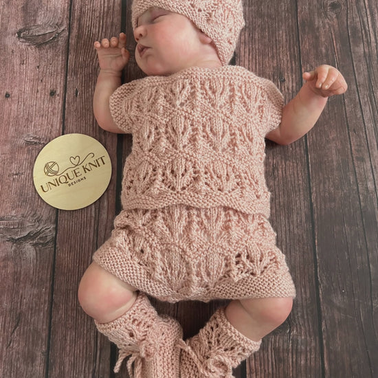 "Zara ” Multi Piece set knitting pattern for reborn doll 16-22" or 0-3 month old baby